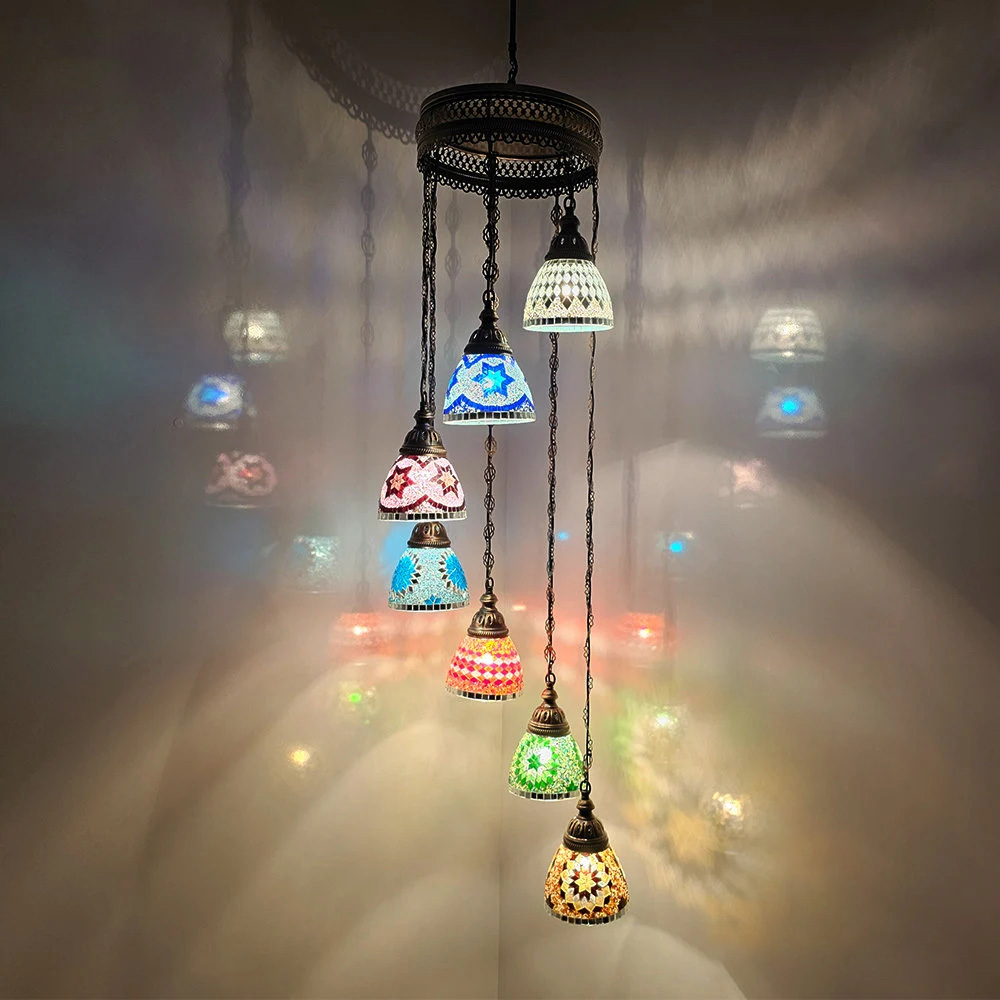 7 Globes Moroccan Mosaic Hanging Ceiling Lamp