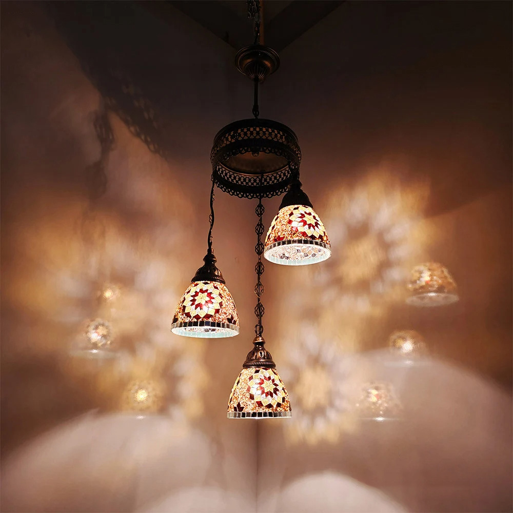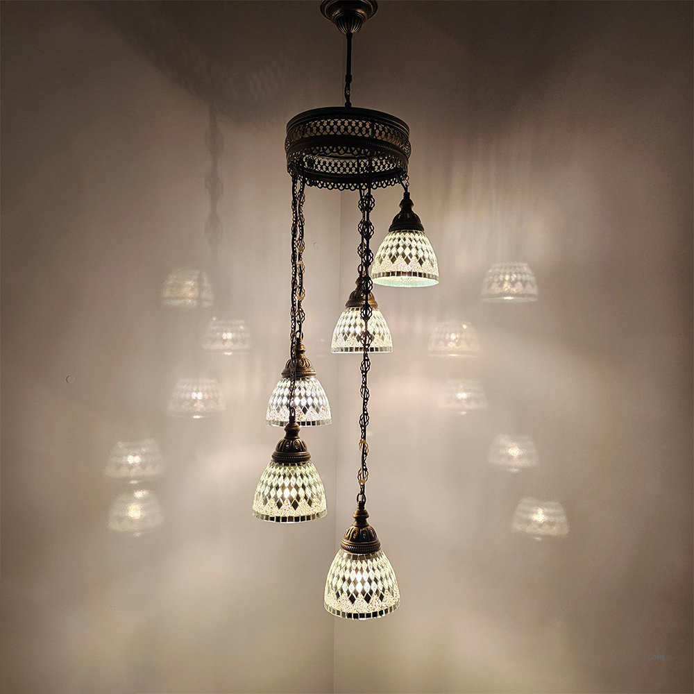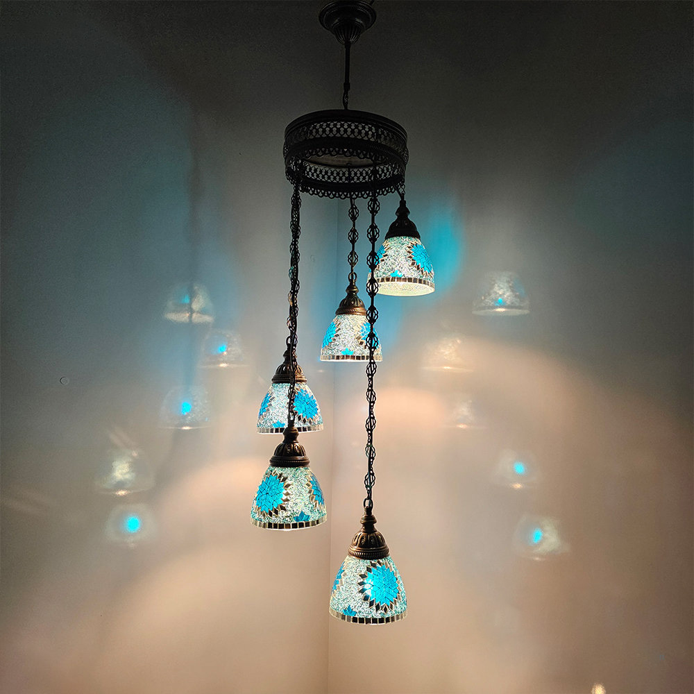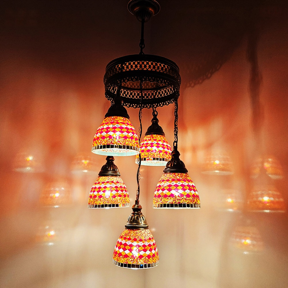 5 Funnel Sphere Turkish Mosaic Chandelier Set