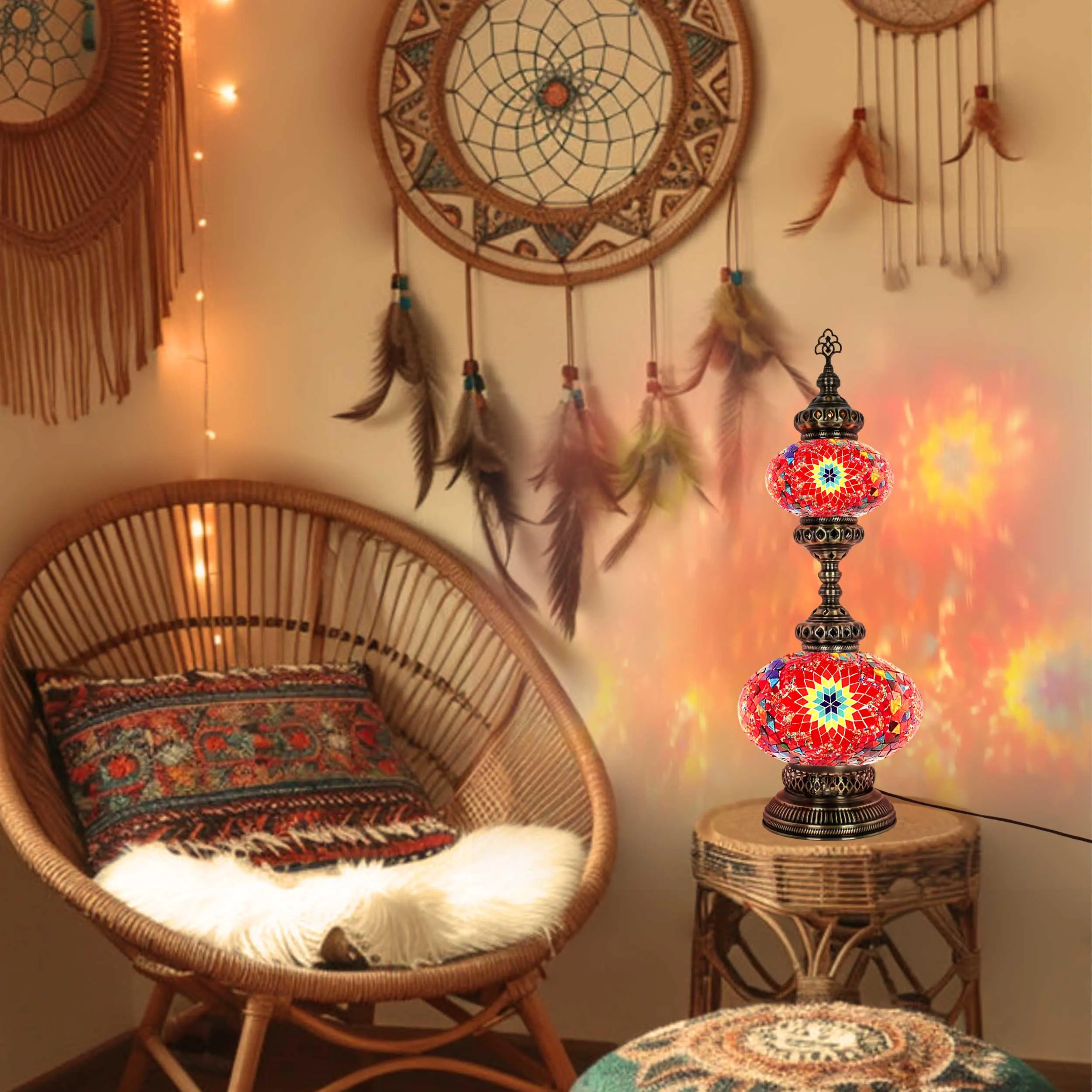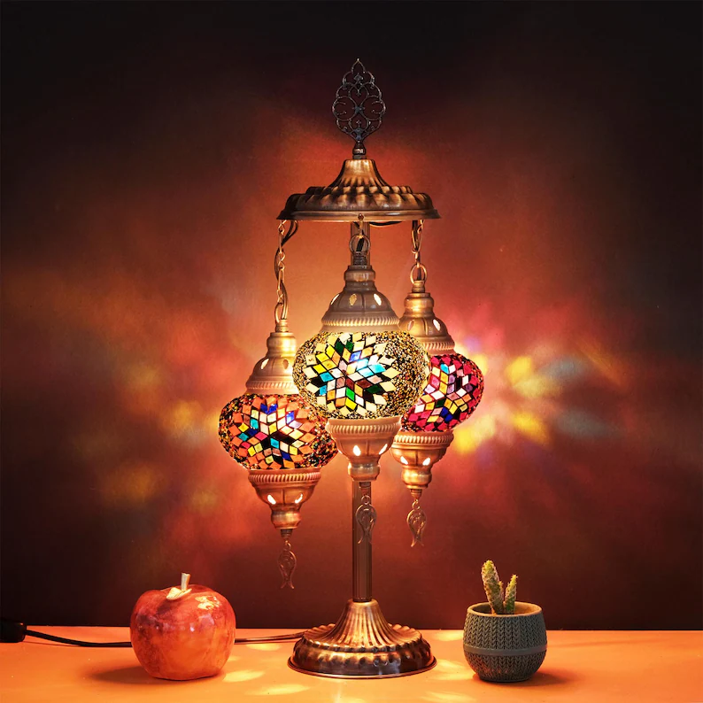 Turkish Mosaic Table Lamp 2-Globe Stained Glass