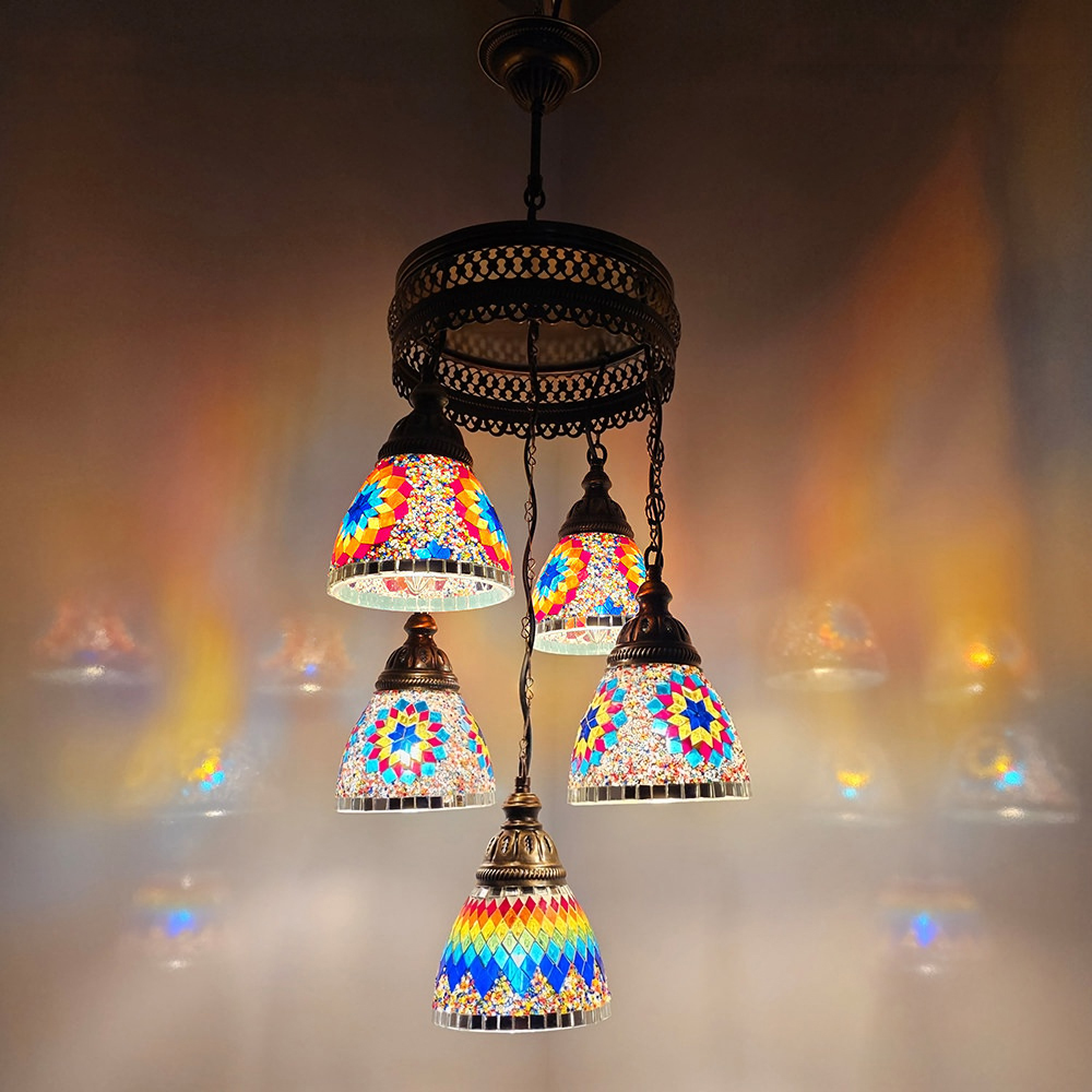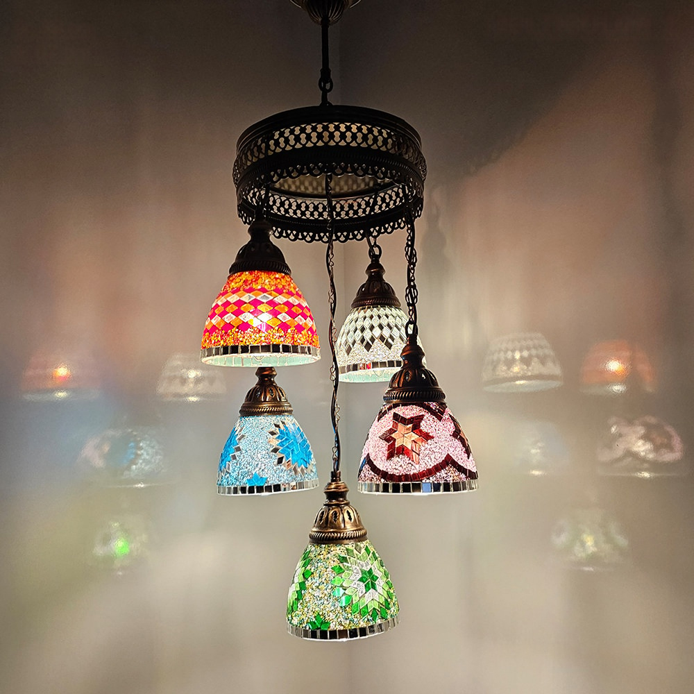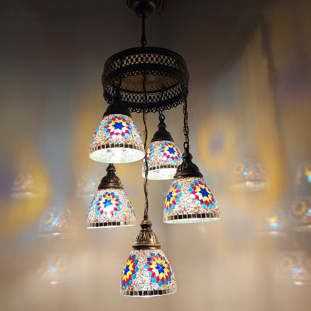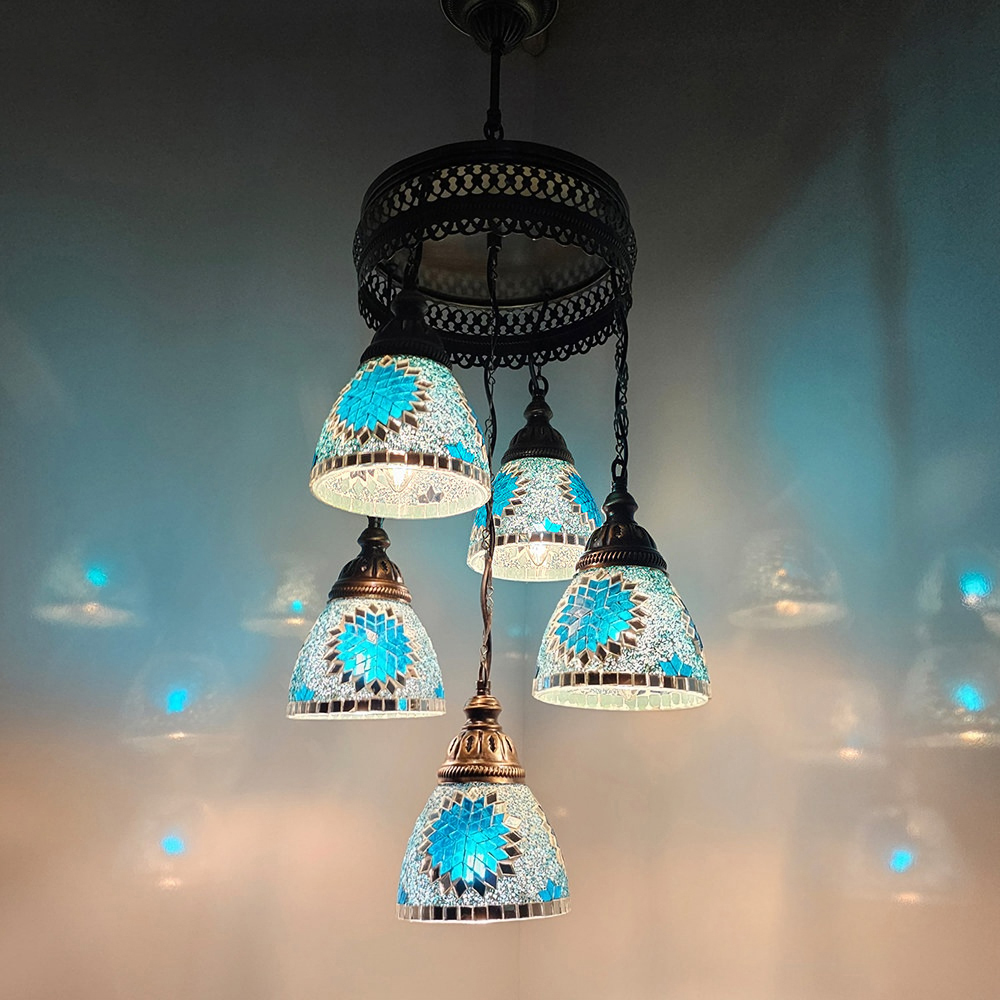5 Funnel Sphere Turkish Mosaic Chandelier Set