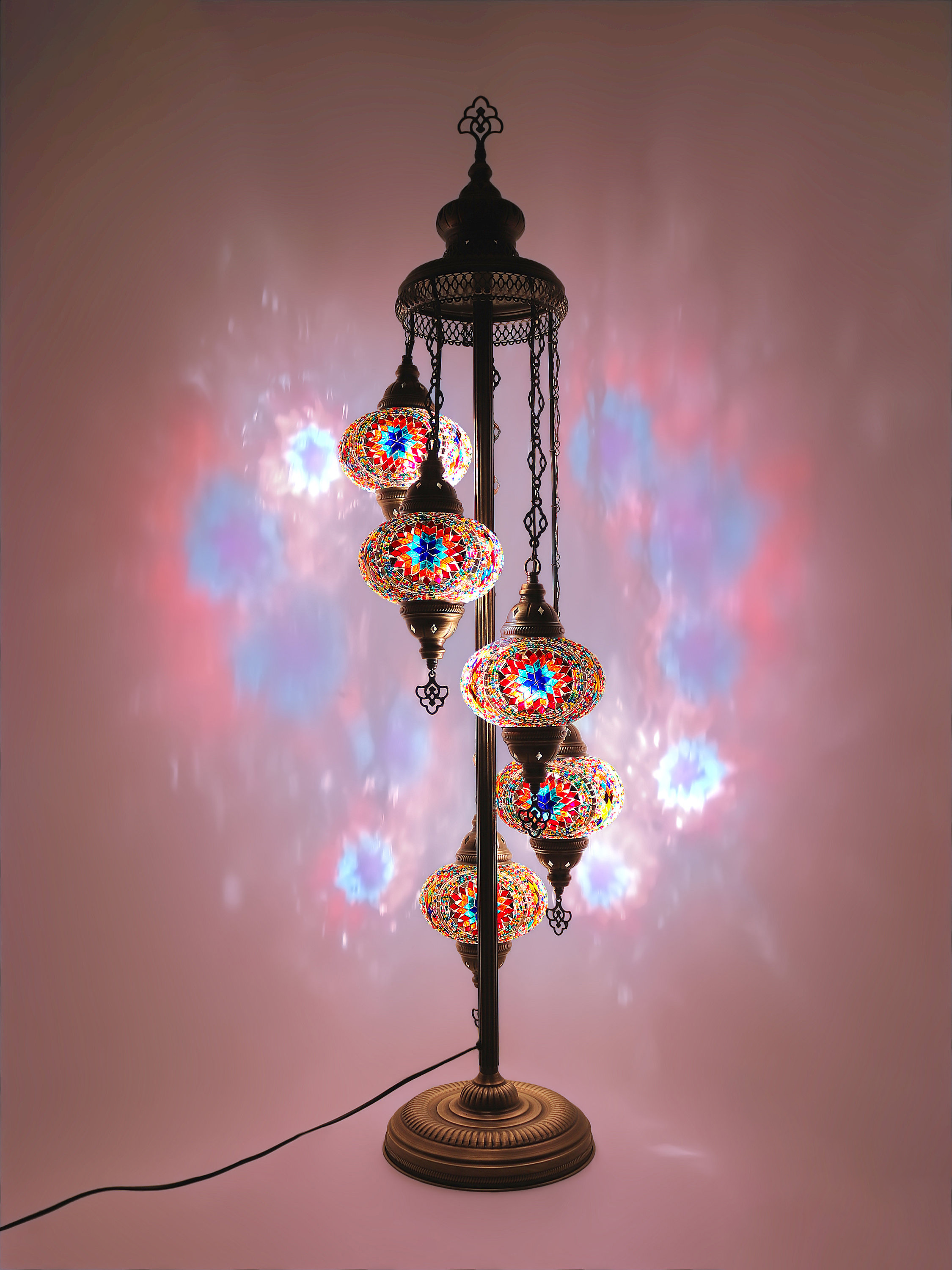 Mosaic Floor Lamp, Turkish Lamp, 5 Globe Mosaic Lamp, Turkish Floor Lamp, Special Design with 7 inch globes,