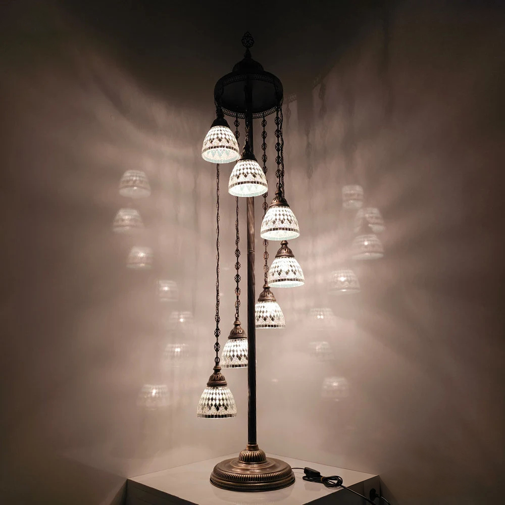 7 Retro Globe Turkish Floor Lamps, Living Room Mosaic Bedside Floor Lights, Bedroom Funnel Floor Lighting, Handmade Mosaic Ball Floor Lamp