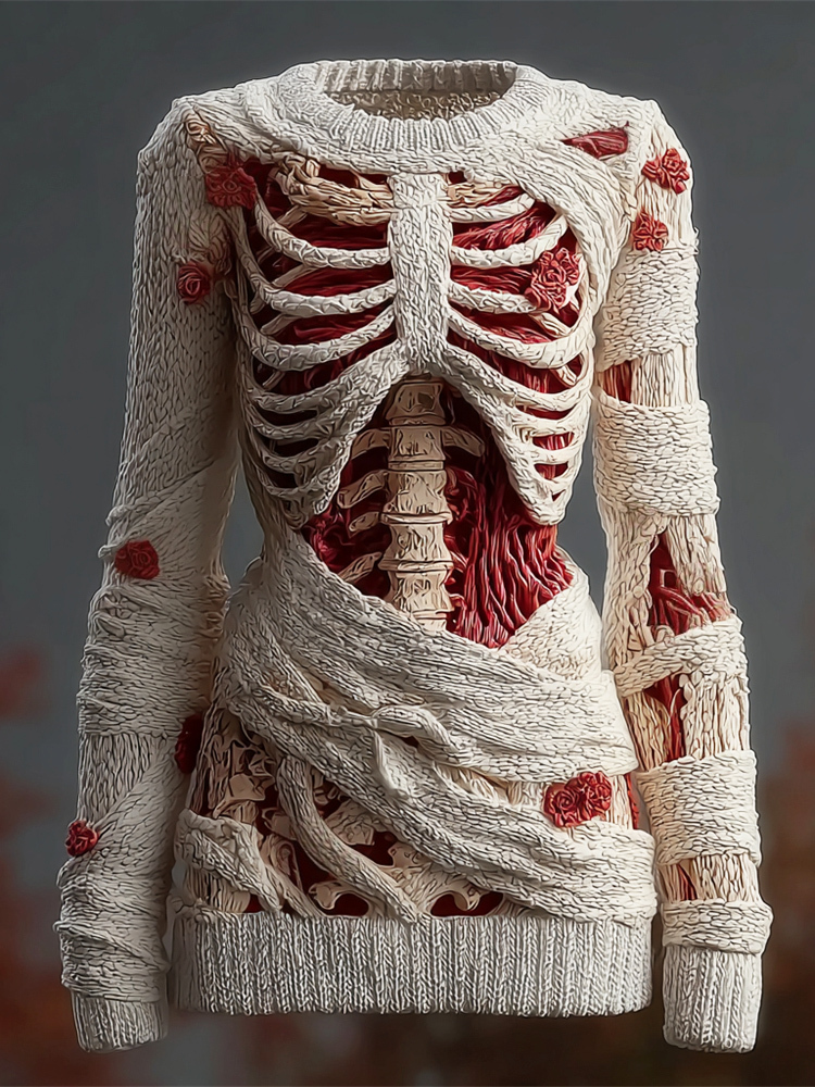 Halloween Muscle Anatomy Bandage Art Women's Knit Slim-fit Sweater