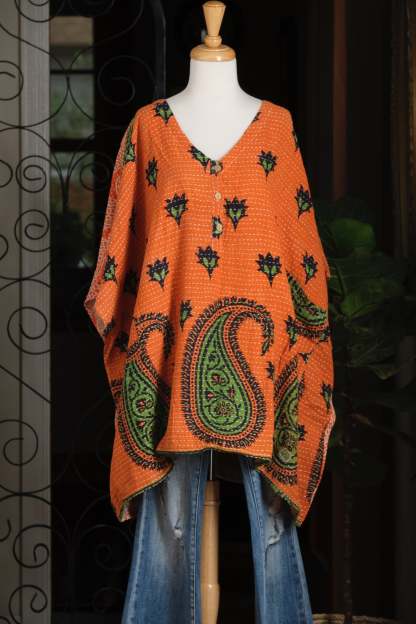Kantha Button Top in Big Paisley