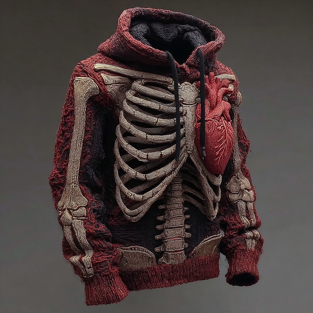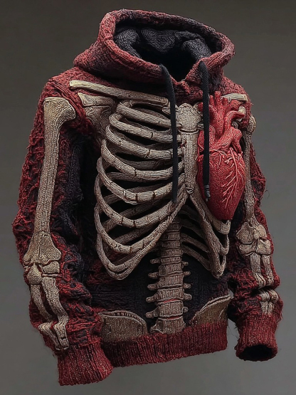 Men's Vintage Halloween Anatomy Art Knit Hooded Sweater