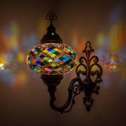 Turkish Moroccan Mosaic Wall Sconce Lamp with Bronze Base - D