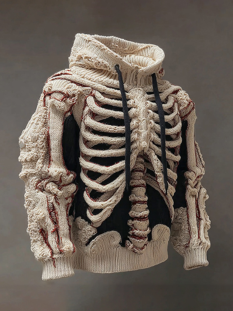 Vintage Halloween Anatomy Art Knit Hooded Sweater