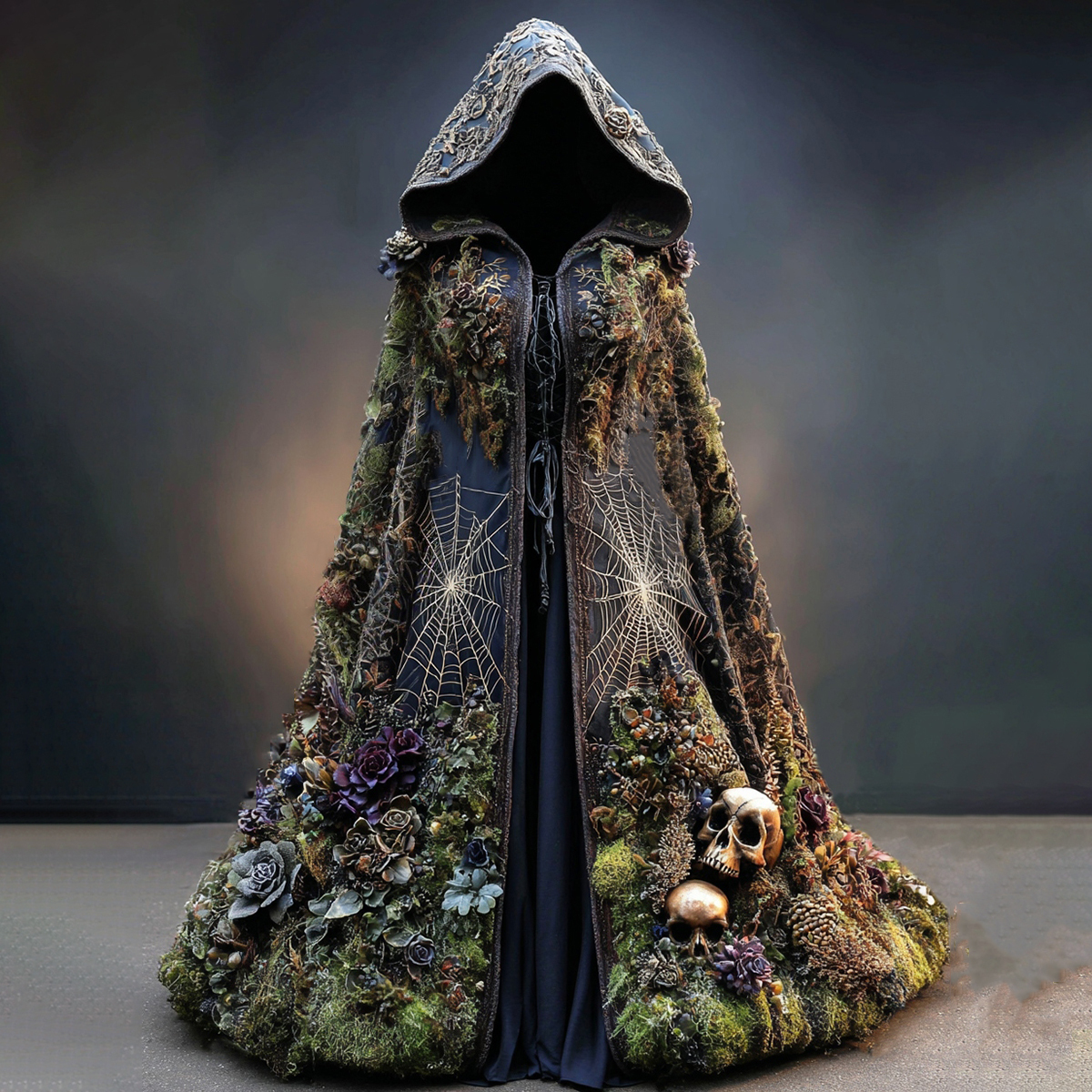 Women's Halloween Skull Floral Moss Witch Hooded Cape